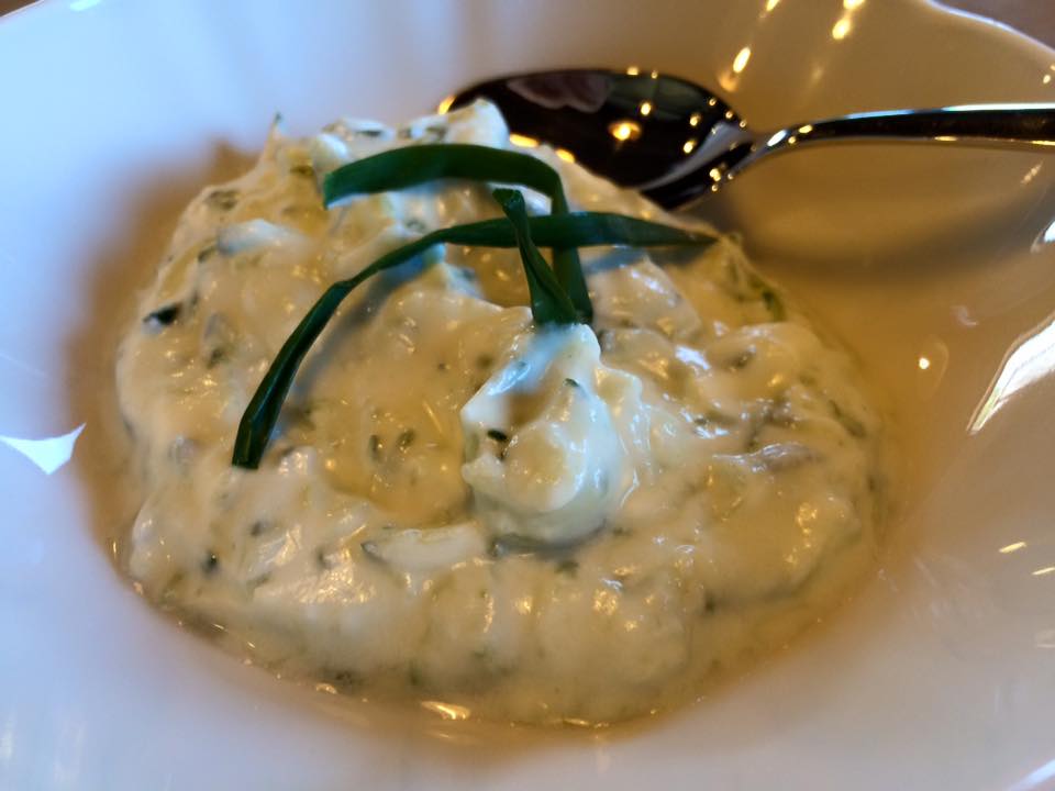 Nell’attesa si mangia il pane, magari spalmando i due tipi di burro subito proposti a tavola.