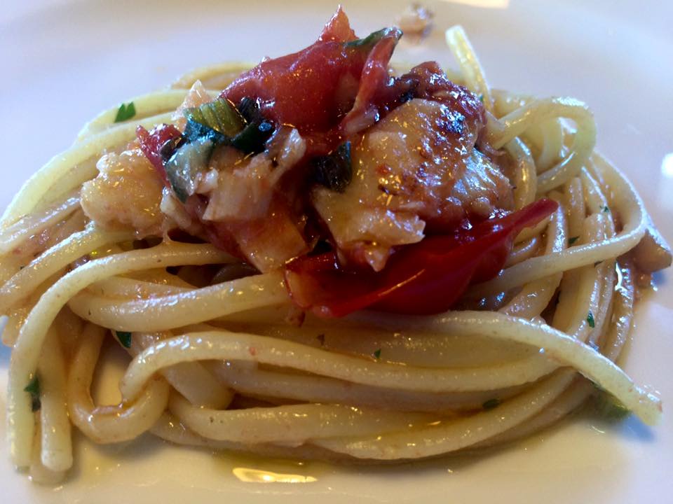 Il pranzo potrebbe finire qui, ma siamo terroni e senza pasta non possiamo stare. Ecco allora una lasagnetta di carciofi molto delicata e la linguina con il baccalà che ci richiama Napoli e Somma Vesuviana dove questo piatto è stato creato.