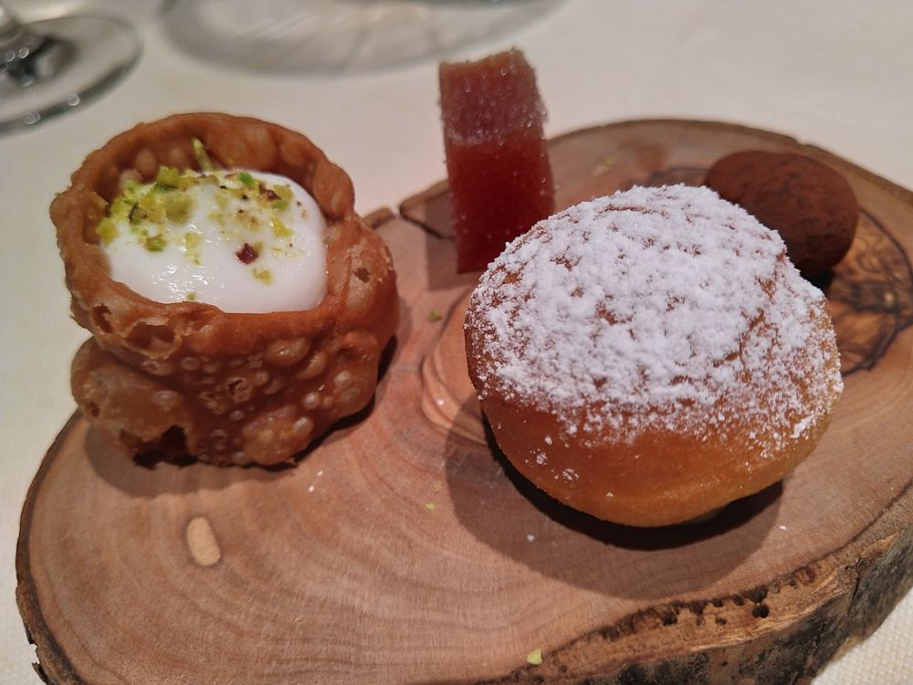 Chiude il percorso un piattino di friandises anch’esse ben eseguite e gustose.
