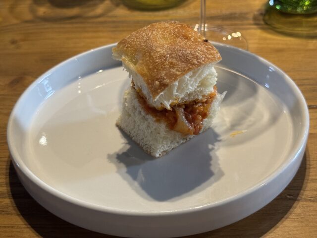 Ci eravamo stati tempo fa, quando l’identità del locale era ancora in fase di definizione. Già allora si percepiva la qualità della materia prima e una cucina in cerca di una propria voce. Oggi, invece, tutto appare più compiuto: i piatti hanno trovato personalità, la visione è chiara, la proposta coerente. Anche la cantina sotterranea ricavata nel tufo oggi é perfettamente organizzata e ospita oltre 400 etichette in continua rotazione, con un focus sull’Asprinio d’Aversa e una selezione pensata per viaggiare tra territori, vitigni e biodiversità.