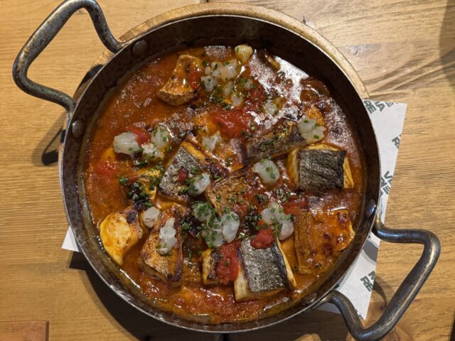 Vizi di Mare si mostra pienamente consapevole del proprio percorso. La prova è “Mare d’Autunno”, un itinerario gastronomico che rispetta i tempi del mare e racconta il pescato con occhi nuovi, senza sprechi. Quando arriva il fermo pesca, il ristorante sceglie di fermarsi con il mare. Da questa attesa nasce il progetto del “quinto quarto di mare”, dove tagli poveri, pesci dimenticati e scarti nobili trovano nuova vita, mentre la frollatura aggiunge profondità e intensità, rilassando le fibre, concentrando i sapori ed evidenziando la nota umami. Teste, guance, pance, fegati e lische sono protagonisti di una cucina circolare: «Anche le parti meno nobili meritano attenzione: è lì che nasce la sorpresa» spiega Luca Lipoma. La brace diventa lo strumento simbolo di questa nuova fase.