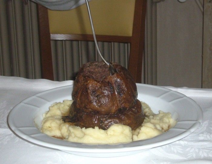 Come primo piatto un grande classico del luogo: cappellacci di zucca con burro e salvia, a cui io e l’amico Matteo Zamorani Alzetta, noto gastronomo milanese a cui il Corrierone dovrebbe affidare la rubrica ViviMilano (altro che Visintin), abbiamo aggiunto abbondante dose di parmigiano per ovviare alla (giusta) dolcezza del ripieno.