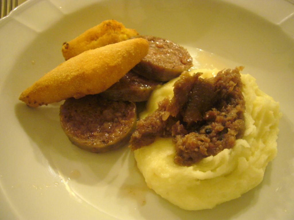Abbiamo poi proseguito con il piatto forte della serata : salama da sugo di 18 mesi accompagnata da purè di patate (poco salato) e cotechino artigianale con crema fritta. Una vera goduria di cui abbiamo pure fatto il bis.