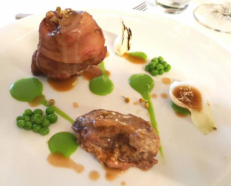 Casa Rispoli, Duo di maialino, piselli, cipollotto e salsa alla camomilla