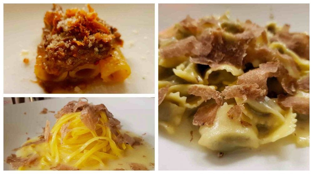 Ed ecco i nostri sfizi al tartufo bianco (plin e tagliolini) genovese, pesce cotto alla grande, carne do kobe.