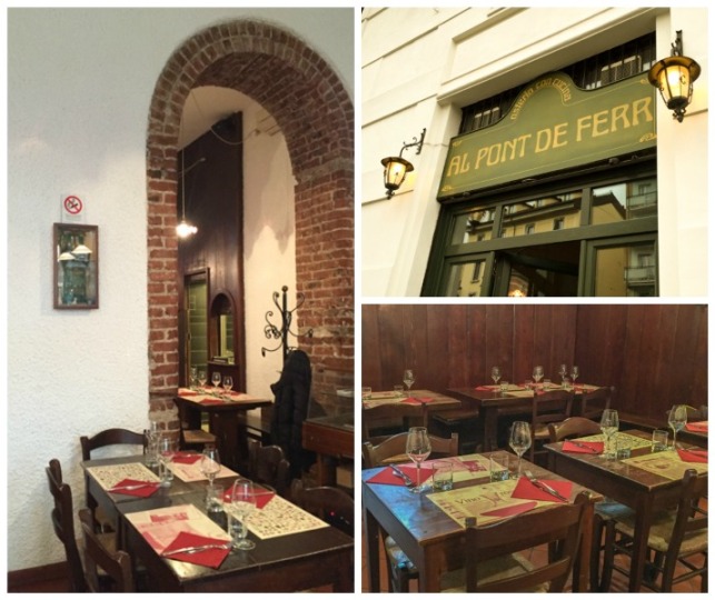 Così mi sono sentita ieri a pranzo, Al Pont de Ferr, sui navigli a Milano. Siamo in una zona fortemente vivace e mondana, dove la muticulturalità è la normalità e la risposta più ovvia ad una domanda così eterogenea, non può che essere il mondo in pochi metri, con la sua gente, con usi e costumi vari e sapori e profumi di ogni tipo. Ma varcata la soglia di questa osteria di altri tempi mi chiudo il mondo alle spalle e faccio un tuffo nel passato. Vittorio Fusari, chef del Pont de Ferr da marzo 2015 ha gli occhi buoni e un aspetto che mi rassicura. Parla con voce bassa e calma, il che è davvero controcorrente attualmente.