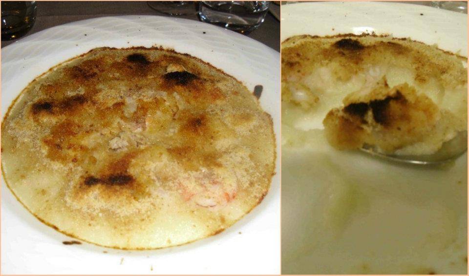 Comincio subito con un fuori porta, va. Abbastanza fuori. Settanta chilometri. Tra Latina e Sabaudia. Ma ovviamente ne è valsa la pena. Il piatto più caldo del gennaio più freddo di tutti i tempi: la zuppa di cipolle e gamberi gratinata di Michele Lombardi, al Funghetto di Latina. Con dentro anche il trucco di un po’ di patate, cremosa, lieve; dei gamberi resta tutto, anche il profumo. Confortevolissima.