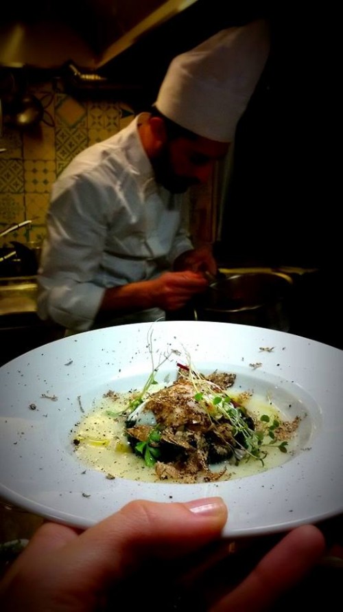 Ho sentito spesso parlare di Salerno città europea, ma soltanto ieri sera – per due ore – mi è sembrata un’affermazione possibile. Seduta ad un bancone in legno, i miei sensi avrebbero voluto moltiplicarsi, per non perdere nulla. Di fronte una giovane ed affiatata brigata ai fornelli, accanto un quartetto straordinario che rapiva i presenti in un travolgente jazz.