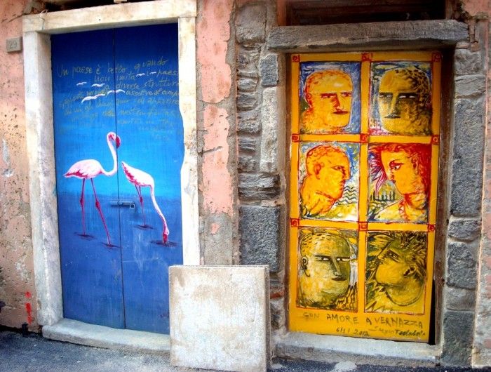 Eppure lungo la discesa si lavora, intonaco e pittura per rincorrere come possibile la stagione: mancherebbero i colori, ma tutti i fondi ancora chiusi hanno porte dipinte, e i colori sono vivissimi, paragonabili a quelli del cielo che oggi è di un blu pazzesco. Qualche tedesco cammina con passo felpato, pedule e bastoncini da trekking: forse i sentieri sono aperti, forse hanno potuto godere dei papaveri in mezzo agli olivi tra il Gùvano e Prevo, sul sentiero numero due che viene da Corniglia. Hanno le facce rosse, sembrano contenti.