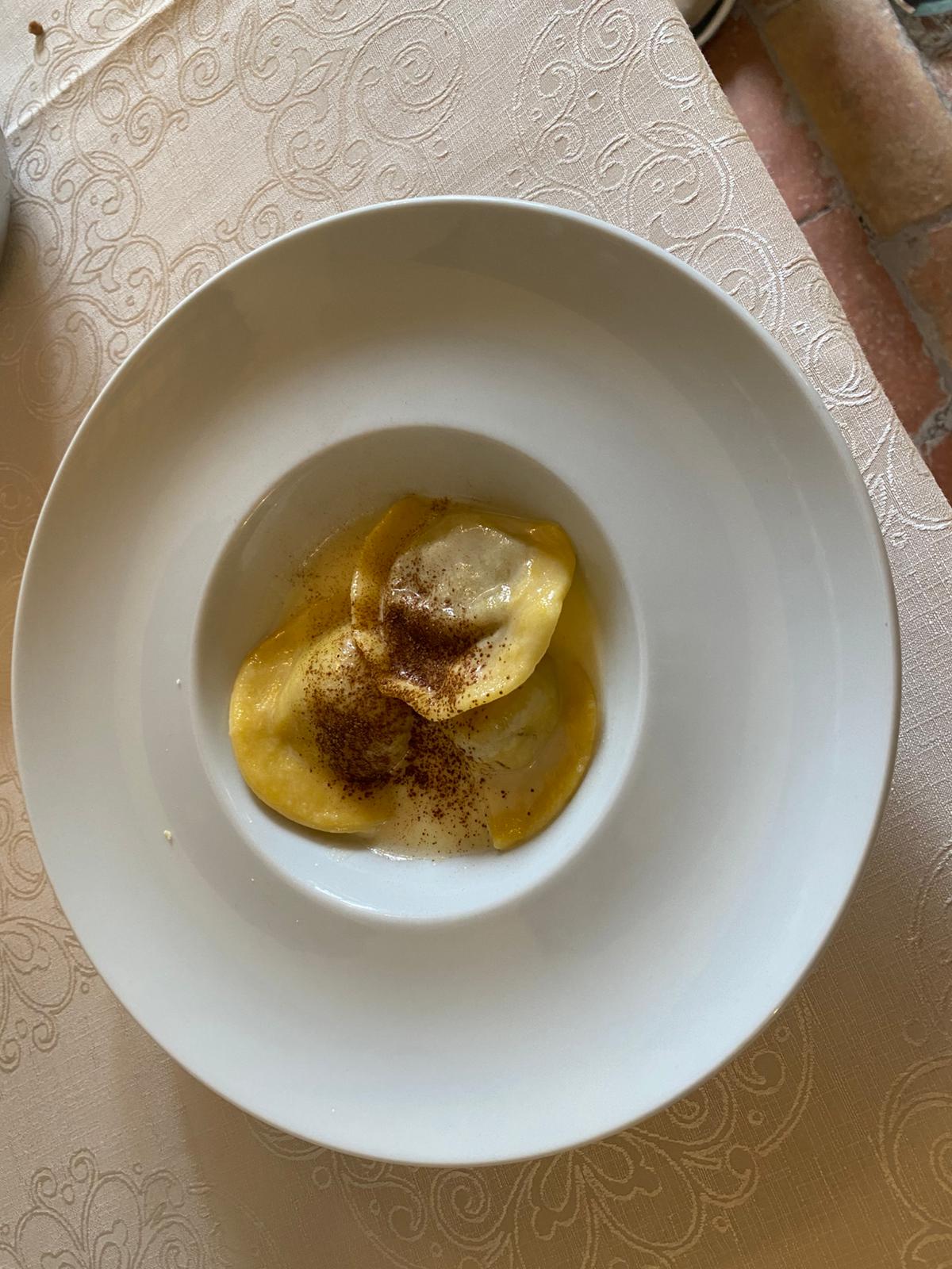 Riserva del Gigante, La Montagnola, ravioli di genovese con fonuta di pecorino e cannella