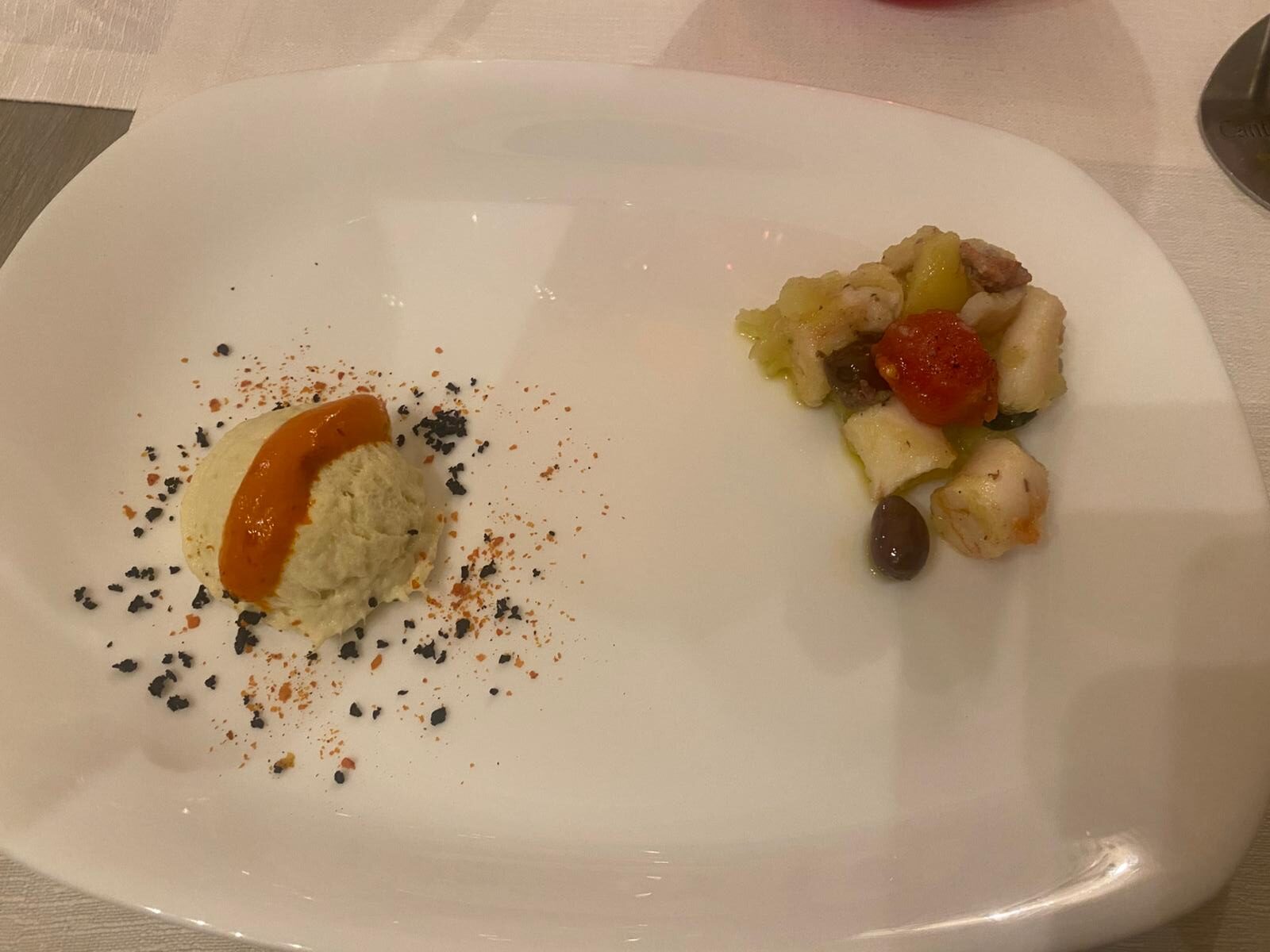 Riviera del Gigante, le Cantine di San Flaviano, baccalà con crema di peperoni