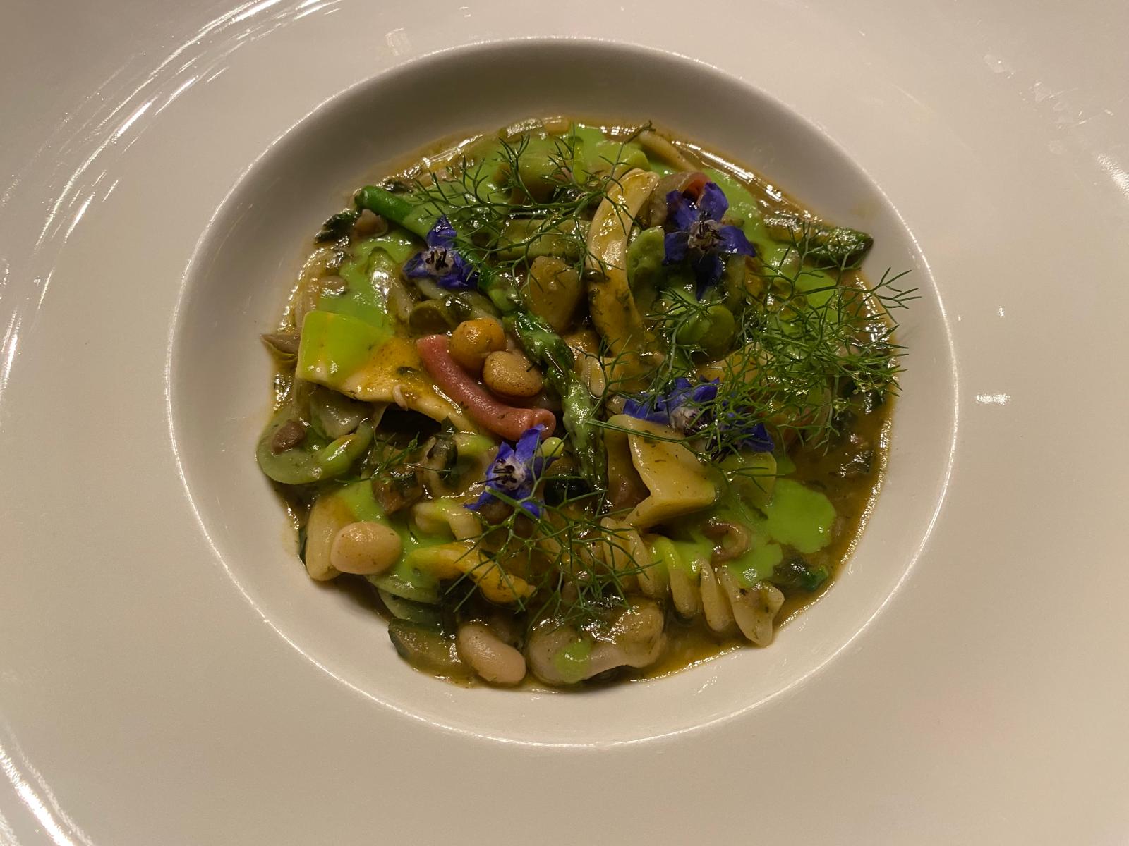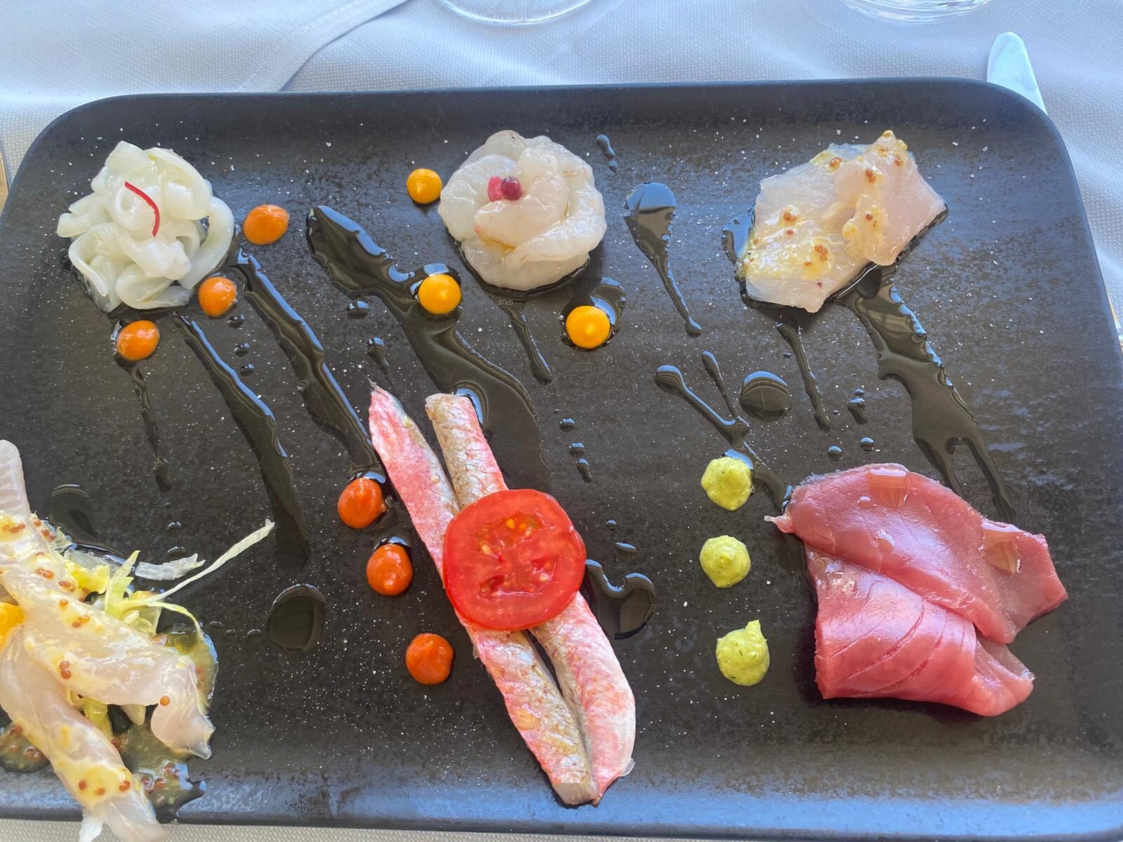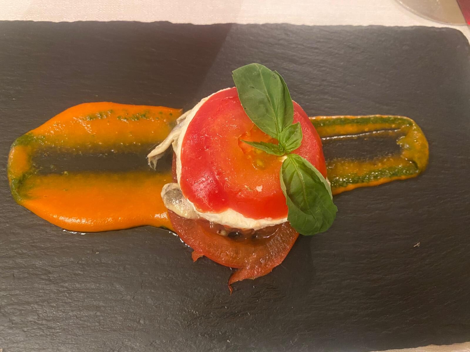 Straordinari il guazzetto e la chitarrina condita con il suo fondo, interessanti gli antipasti come il baccalà mantecato con crema di peperoni, la vellutata di broccoli e vongole e la caprese di mare: alici marinate, mozzarella e pomodoro in varie consistenze.
