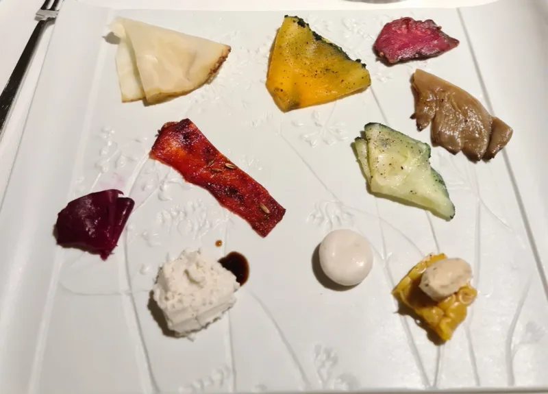 Il risultato del menu 2021, dedicato al Cilento è stato straordinariamente ironico e divertente, molto raccontato, in cui ogni piatto rivela l’approfondimento sul territorio. L’ironia è da sempre uno degli ingredienti che preferisco in cucina e Giovanni usa proprio l’ironia come fil rouge, il collante che tiene tutto insieme. Tra le cose più buone provate nel 2021 ci sono senza dubbio “i salumi vegetali” che la coppia propone a tutti gli ospiti come benvenuto.