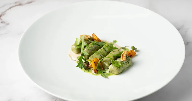Gnocchi di patate con pesto di rucola e salsa alle noci