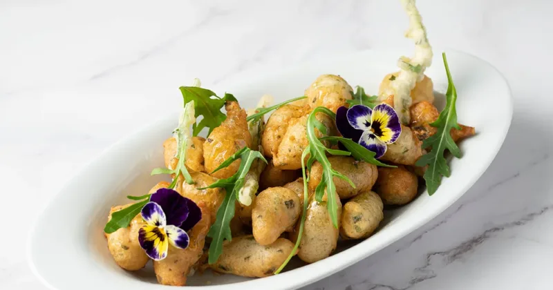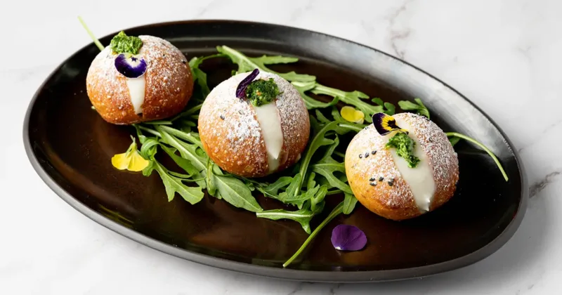 Zeppoline di pasta cresciuta con rucola e riduzione agrodolce