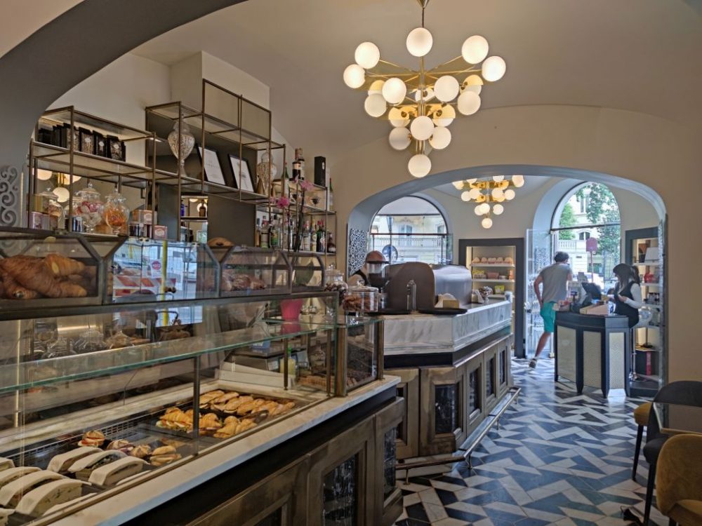 Caffe’ Hungaria- il bancone della pasticceria e il laboratorio a vista