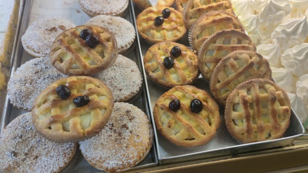 Per la pasticceria, molti dolci sono stati proposti, con il tempo, in monoporzione, come il tiramisù o le crostate con ricotta e visciole. Il lavoro sulla presentazione estetica è stato molto rilevante, effettuato per rendere i dolci più eleganti. La vetrina dei dolci ospita moltissime proposte, tra cui dei panini dolci con ricotta, panna e limone, il classico maritozzo (con la variante allo zabaione) i diplomatici, i bignè alla crema, le code di aragoste ripiene di zabaione e i cornetti all’italiana con lievito naturale.