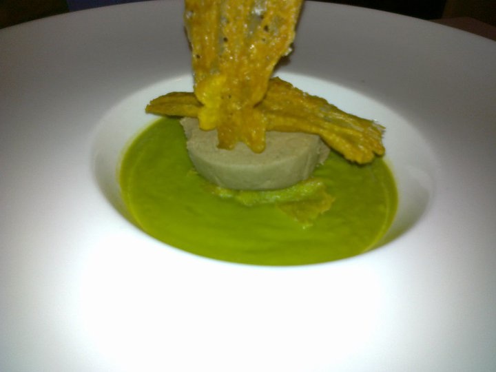 Sempre disponibile, anche a pranzo, il menu alla carta. Abbiamo preso due antipasti e due primi. L’assoluto di cavolfiore: una crema di cavolfiore con la colatura di alici e cavolfiore fritto in pastella. La cosa più buona delle quattro, in assoluto (!). La crema di cavolfiore è delicatissima, perfetta. Il cavolfiore è stato ammansito al naso ma il sapore è reso gagliardo dalla colatura di alici. La frittura, poi, è leggerissima, prende quasi il volo dal piatto. Anche il pate di fegato di coniglio con cialde di polenta e piselli è un antipasto riuscito.