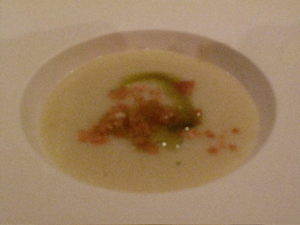 Predisposti i succhi gastrici con una vellutata di patate, porri e parmigiano croccante di una certa classe, mi lascio tentare da un piatto chiamato Fiume: animelle, aringhe e buondì Motta.