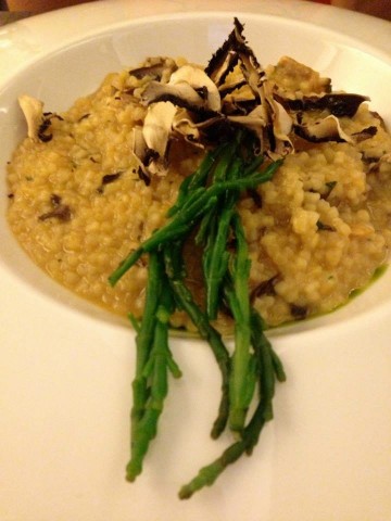 Tra i primi piatti, un discreto tentativo di dare carattere al couscous, con funghi, vongole e finocchietto e poi il piatto che, da solo, vale la cena: il raviolo aperto con dentro castrato di pecora e crema di melanzane. Come la sfoglia riesca ad accarezzare una delle carni più difficili da addomesticare, e il sapore delle melanzane a rimanere integro, resta un segreto custodito nella testa e nelle sapienti mani di chi lo ha concepito. Un piatto ricco eppure sorprendentemente elegante.