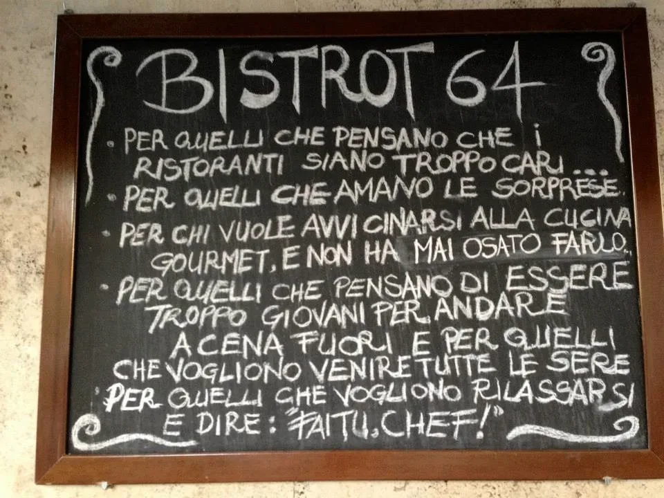 bistrot cover 26/6/2014 Torna a: Roma, Bistrot64 al Flaminio Il “manifesto” del Bistrot 64Successiva →