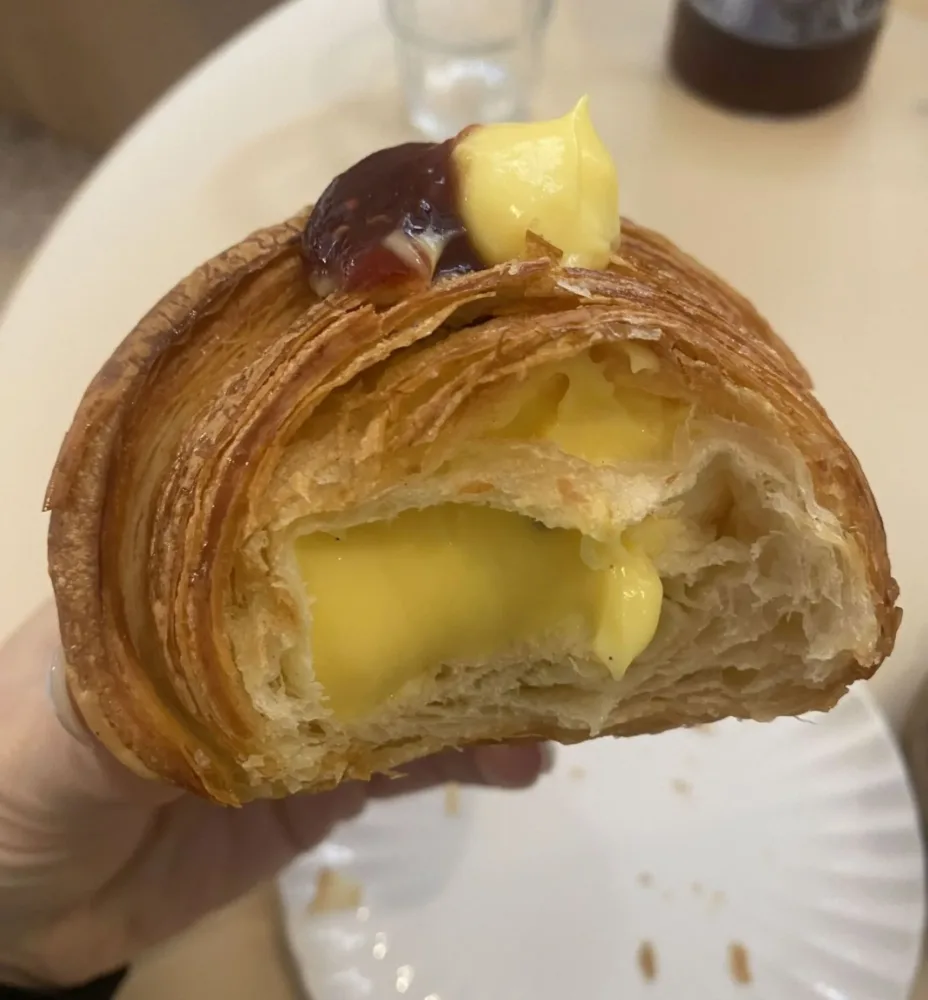 Cafe’ Merenda – croissant con crema pasticcera e marmellata di lamponi