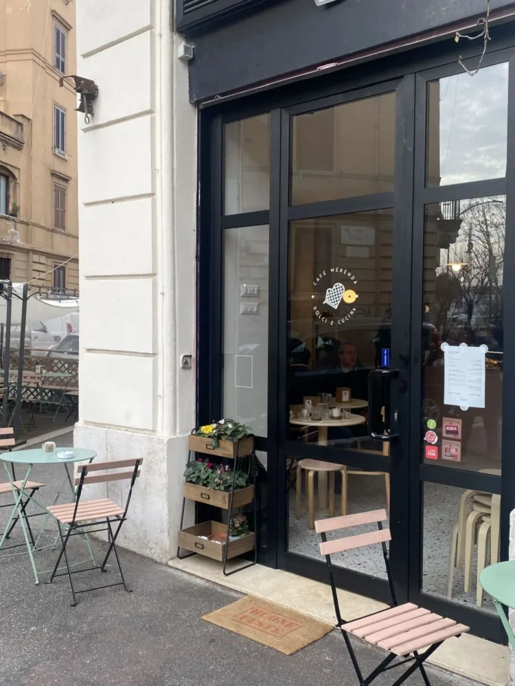 È la casa di Chiara Caruso, pasticciera vulcanica e lievitista: una professionistapreparata ed empatica, che lavora con le mani, la testa e il cuore, selezionando in modo maniacale le materie prime e prestando la massima attenzione ai dettagli. Palermitana di nascita, Chiara ha aperto la prima sede di Café Merenda nel 2016, a pochi metri da viale Guglielmo Marconi, e, nel 2022, si è trasferita a via del Gazometro n.5. La struttura può ospitare una quindicina di posti e, all’esterno, altri venti.