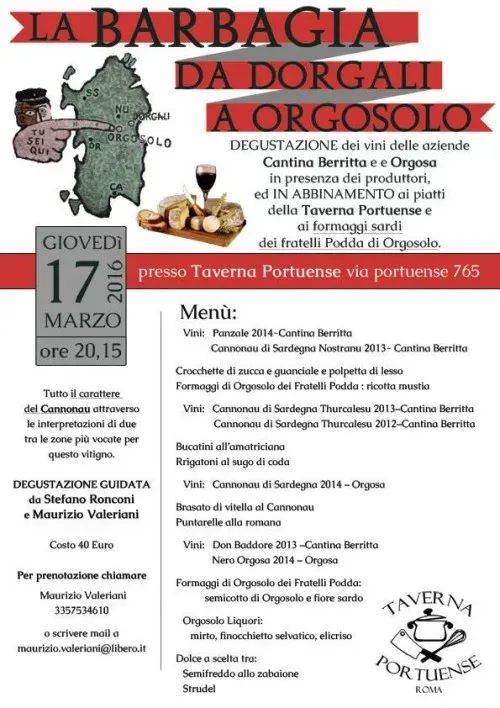 Cena degustazione con i vini di Cantina Beritti e Orgosa alla Taverna Portuense di Roma 7/3/2016 Torna a: Roma, 17 marzo. Cena degustazione con i vini di Cantina Berritta e Orgosa alla Taverna Portuense Cena degustazione con i vini di Cantina Beritti e Orgosa alla Taverna Portuense di Roma