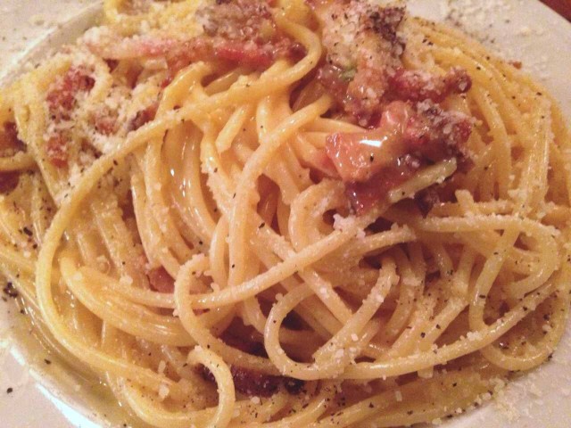 Sfiziosi e con una notevole cottura al dente gli spaghetti con aglio, olio, pecorino e pomodoro pachino; gustoso il risotto di zucca e Castelmagno, ricchi (quasi un piatto unico) e saporiti i fusilli irpini tirati al ferro, con salsiccia e carciofi. Tra i secondi baccalà in crosta di patate, buono ma forse un pizzico in la’ con il sale e una discreta scelta alla griglia. Soddisfacente – anche perchè con la cottura desiderata e indovinata – l’hamburger con mele renette e cipolle di Tropea.