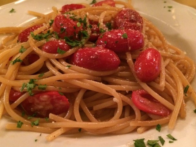 Guerrini, gli spaghetti aglio e olio con pecorino e pachini