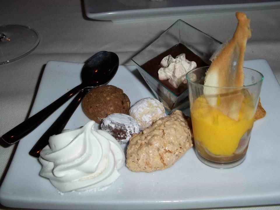 Si chiude con la piccola pasticceria e un dessert – la meteorite di cioccolato alle fragole su crema di mango – che piace per l’accenno di sale aromatico nel cacao, e perchè grazie anche ai capperi di Pantelleria, non vuole essere piacioso a tutti costi. Conto sui 55 euro.