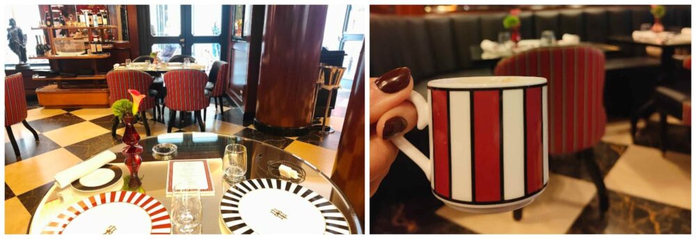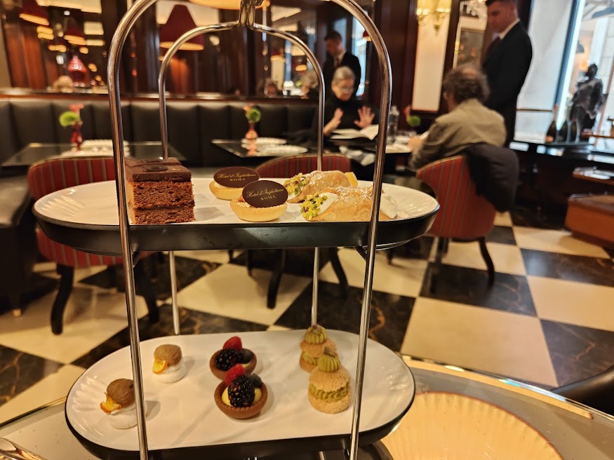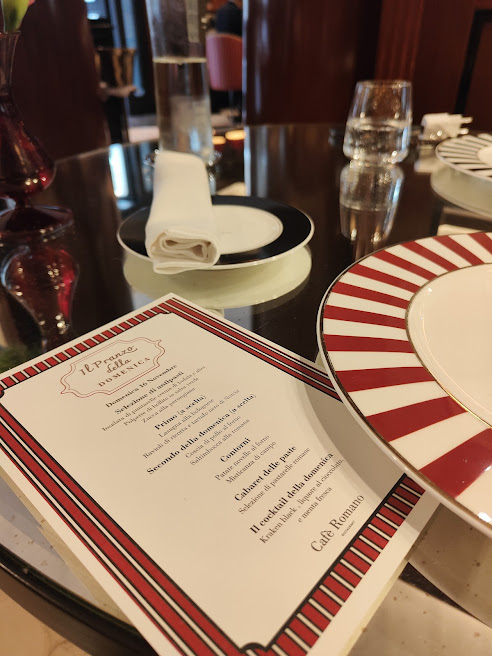 Gli spazi del Cafè Romano sono di design, molto caldi, sofisticati, nei toni del nero e bordeaux, in cui i dettagli color oro, gli specchi e gli arredi antichi si mixano perfettamente con le scelte stilistiche contemporanee. E cosi fermarsi a pranzo, a cena, per un the pomeridiano accompagnato – a partire dai prossimi giorni – anche da tipiche dolcezze natalizie, è un momento assolutamente da dedicarsi.