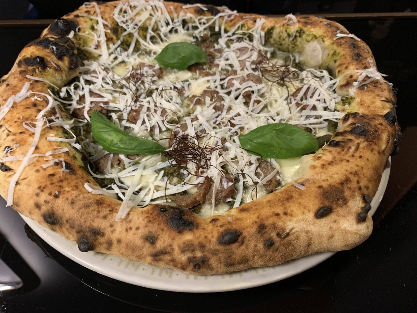 La tipologia di pizza è quella contemporanea, che guarda a Napoli per la base estremamente sottile e a Caserta per il cornicione gonfio e alveolato. Gli ingredienti delle farciture sono selezionati con cura, dai salumi e le carni del beneventano ai latticini dei Monti Lattari, dal provolone di Agerola alla bufala aversana. Il risultato è molto soddisfacente, anche se ci hanno convinto di più le pizze senza una base di crema, che tende a inumidire troppo il disco di pasta (come nel caso della ‘salsiccia e friarielli’). Ma sappiamo che è una questione di gusti, e la tendenza generale sembra andare da tutt’altra parte.