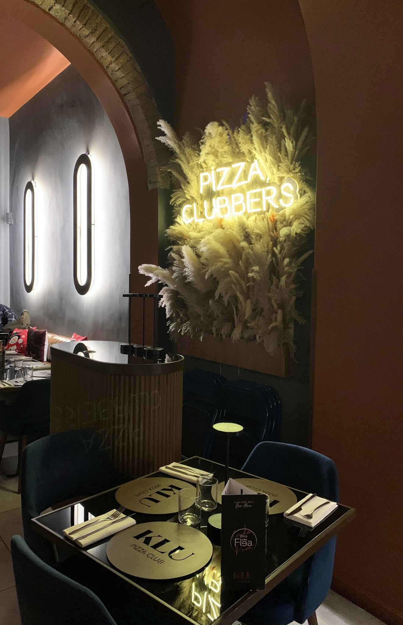 Siamo nel quartiere Prati (per chi si sposta con i mezzi pubblici, fermata Ottaviano della metropolitana) a pochi minuti dal Vaticano. Qui di turisti ne girano parecchi ma già all’ingresso di KLU Pizza Club si capisce che non è un locale “inflazionato”. Certo il bancone dei cocktail e i tavoli sono pieni ma è una clientela prevalentemente romana e che, ad ogni modo, non dà l’idea di essere lì per caso.