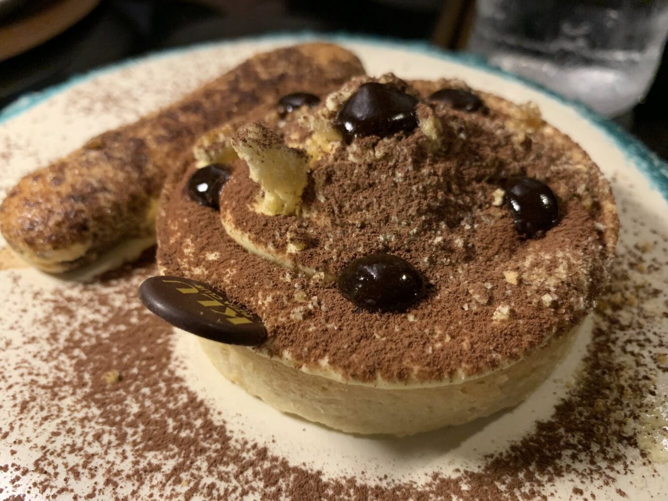Chiusura dolce, con dessert variamente interpretati, come nel caso del tiramisù, proposto in versione tartelletta.