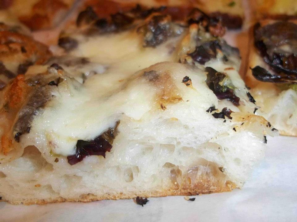 I primi due punti sono strettamente collegati. Non c’è niente di meglio che addentare un trancio e sentire allo stesso tempo la croccantezza della pasta sotto i denti e la parte superiore resa soffice da una buona alveolatura. In questo equilibrio sta il principio di tutte le pizze al taglio.