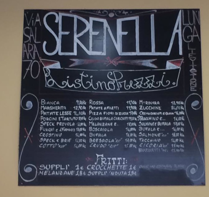 La pizzeria Serenella in via Salaria, fortunatamente, si trova in una posizione intermedia – io direi ragionevole – del suddetto continuum.