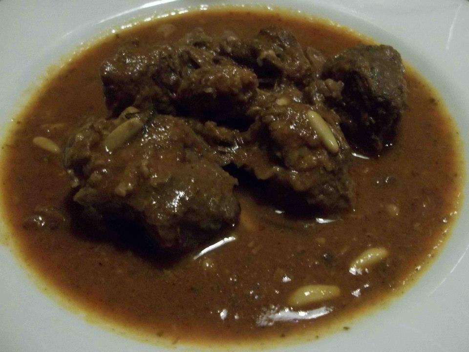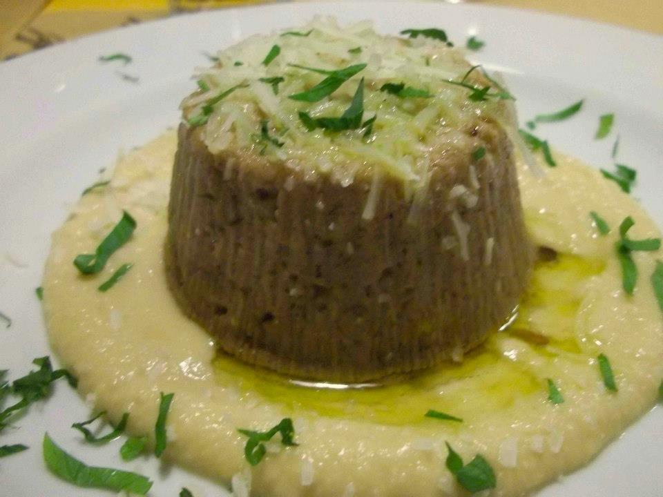 Con il tortino di pane e patate ai funghi porcini secchi si ritorna ai sapori più ancestrali, gusto deciso e delicato insieme, il tutto tenuto insieme dalle diverse consistenze: piatto semplice e pulito. E poi si viaggia tra Tuscia e Maremma, con lo spezzatino di agnello cotto nel buione, con i pinoli e profumato intensamente al rosmarino (il buione o buglione, è la salsa di cottura delle carni “robuste” a base di vino e pomodoro, anche con un po’ di concentrato).