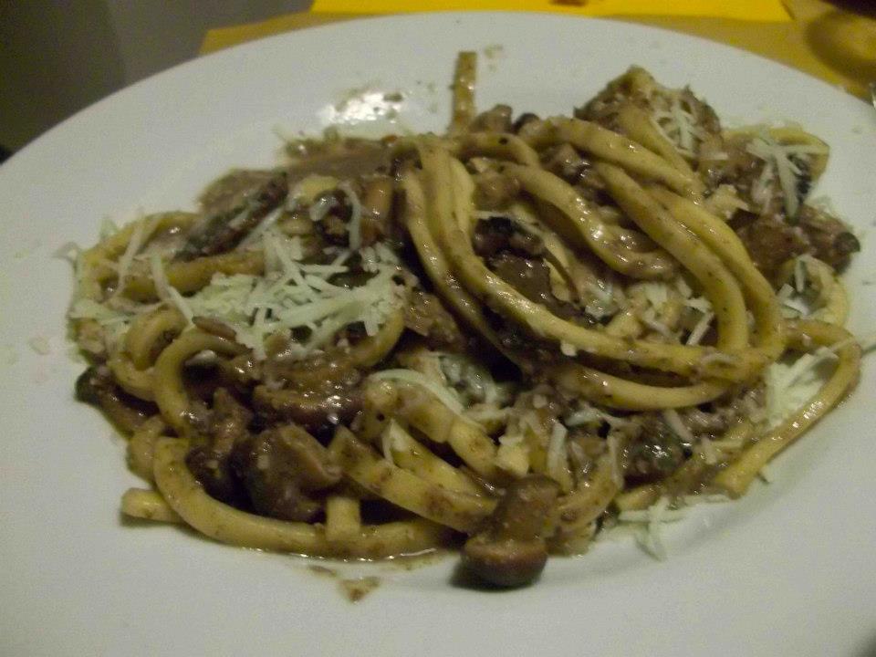 Delicata la crema di ceci neri, mentre i lombrichelli (pasta fresca tirata a mano, una sorta di tonnarelli) con tartufo nero, piopparelli e noci è risultato essere il piatto meno convincente, con il tartufo a coprire tutto il resto e le noci che riescono ad esprimere solo la croccantezza. Meglio sarebbe stato valorizzare i funghi di stagione e lasciare al loro destino, in un primo piatto ad hoc, il tubero più prezioso. Robusti ma gradevolmente speziati i tonnarelli con il sugo delle polpette di gallina “ubriaca”.