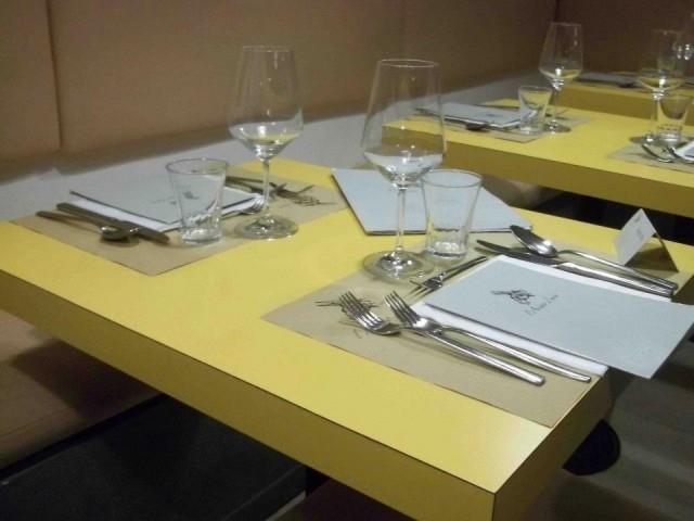 Arredo minimal ma coloratissimo, tra giallo e blu intenso, piccoli tavoli quadrati apparecchiati in maniera molto easy, un servizio misurato ma sciolto, una carta dei vini non ampia ma ben studiata e una bella scelta di birre artigianali.