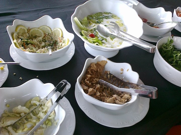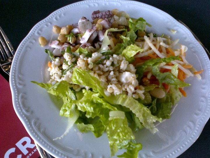 Questa parte del buffet è molto ricca. Oltre a tante verdure e ortaggi da condire a piacere, ci sono insalate di legumi, di grano e orzo, di polpo e ceci, di tonno, con mozzarella, insalata russa.