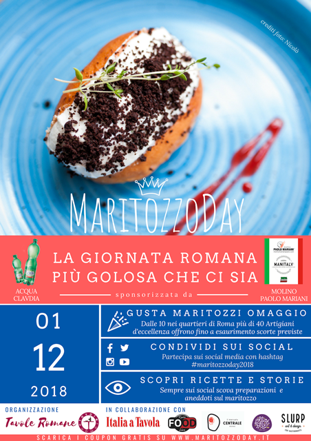 Sabato 1 dicembre Maritozzi Special Edition saranno proposti in carta in via eccezionale da alcuni dei rinomati osti e chef aderenti alla rassegna sulla “Cucina Romanesca” ospitata per il 2018 su Tavole Romane, dedicata alla settimana romana a tavola e alle festività.