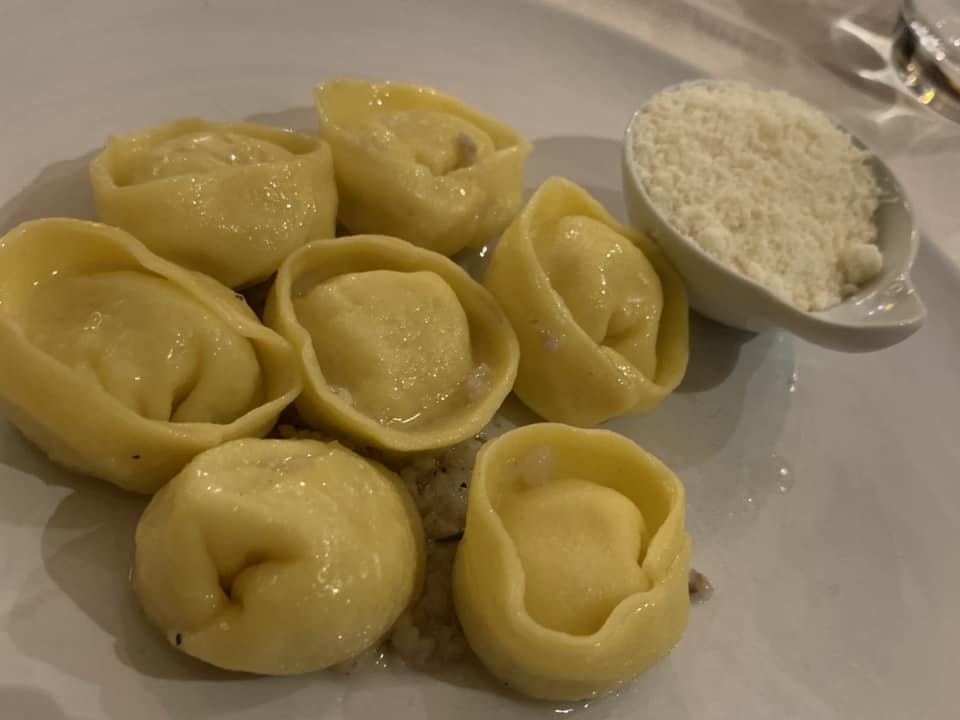Efficace la spinta agrumata delle alici imbottite in foglia di porro e arance; corroborante la crema di funghi e patate. Da provare, quando si è qui, la pasta fresca: il DNA emiliano viene fuori da una sfoglia che si conferma notevole, come nei cappellacci di patate allardati, accompagnati da un’idea di pecorino.