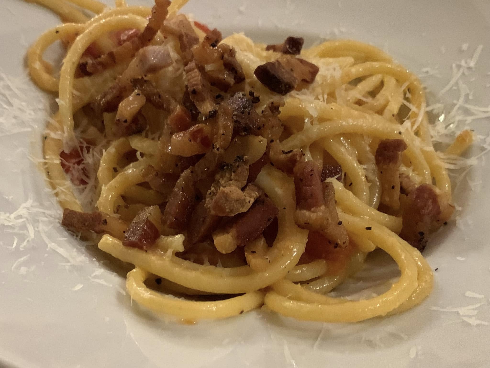 In cucina c’è sempre Cristina Iemmi, in sala sempre Nicoletta Baiani. Anche il menu mantiene i suoi punti fermi, ricette della tradizione solo un poco alleggerite, zuppe di stagione, innesti giornalieri a seconda del mercato. E guai a togliere i perciatelli, con guanciale croccante, filetto di pomodoro e pecorino, fresca lettura di un’amatriciana più che indovinata.