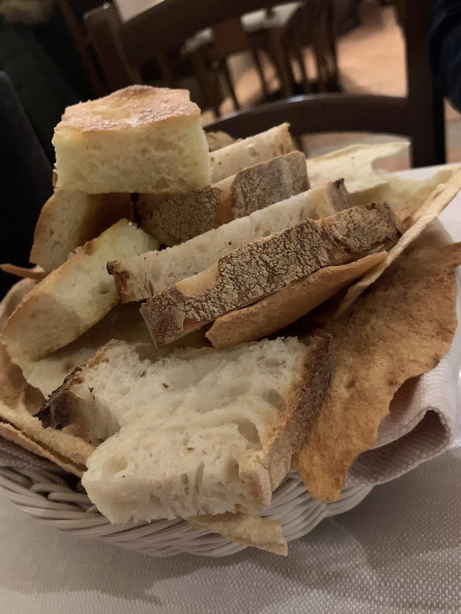 Cestino del pane ricco e vario, bella carta dei vini, pensata, molti spunti interessanti e originali sul territorio, senza ricarichi da furto e una ampia scelta al bicchiere.