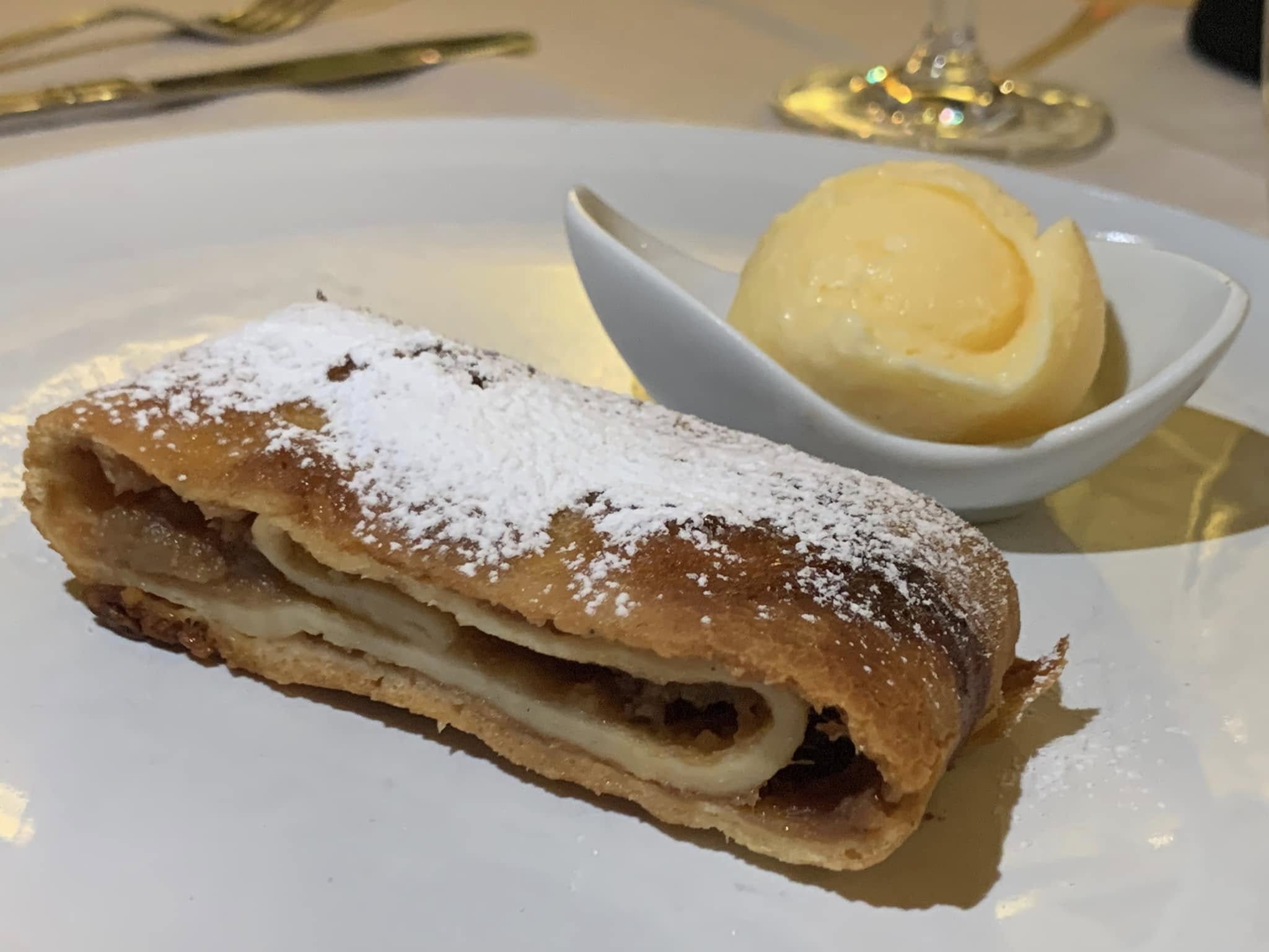 Si chiude con dessert classici che ruotano sempre e che per qualità degli ingredienti ed esecuzione non deludono, come la crostata di ricotta e visciole o lo strudel con gelato all crema.