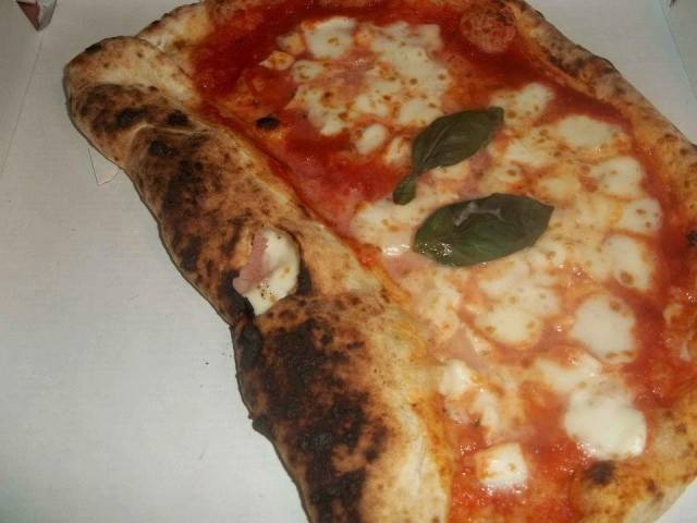 Diciamo subito che le varianti “in rosso” ci sono piaciute più delle bianche. A cominciare dal calzone, ripieno di ricotta, mozzarella e prosciutto cotto e, soprattutto da una margherita molto buona; gli ingredienti sono di qualità a partire dal fiordilatte (a richiesta anche quella di bufala) e da un ottimo pomodoro. Poi c’è la Maradona, con il cornicione ripieno di ricotta al pepe, la Troisi, metà ripieno e metà margherita.