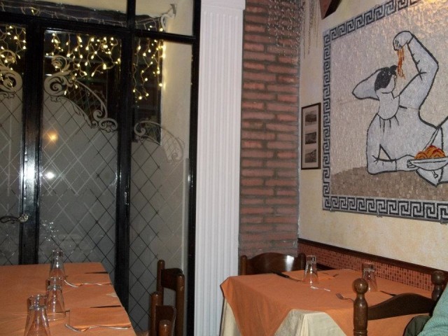 C’è anche qualche primo piatto, come i bucatini all’amatriciana e la pasta e fagioli con le cozze servita nel tegamino di coccio, entrambi non disdegnati dai miei vicini di tavolo: un’allegra comitiva di vecchietti che ne hanno ricavato l’energia necessaria per intonare un coretto all’insegna di «ma che ce frega ma che ce ‘mporta» etc etc. Altro che Madonna-Veronica-Ciccone versione anni Ottanta che continuava a dimenarsi inutilmente dall’alto del megatelevisore a schermo piatto acceso in sala. Un’esperienza genuinamente folk, non c’è che dire. Ma la pizza vale l’ardire.