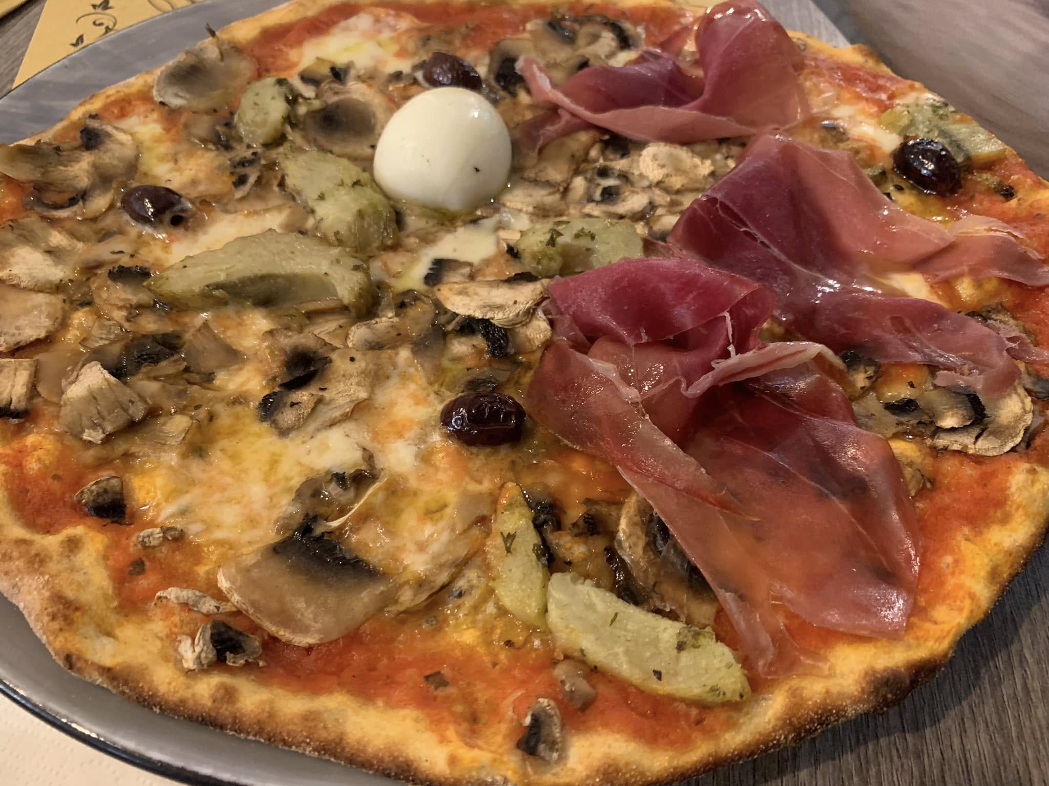 Siamo quindi ben lontani dal caos, in un locale a gestione familiare con una saletta di circa 40 coperti dedicata alla pizzeria. Il vero bonus del posto è lo spazio esterno, con un bel giardino aperto quasi tutto l’anno.