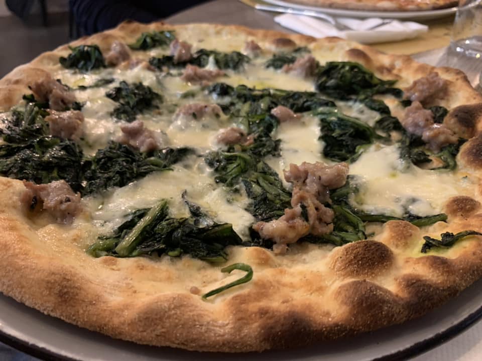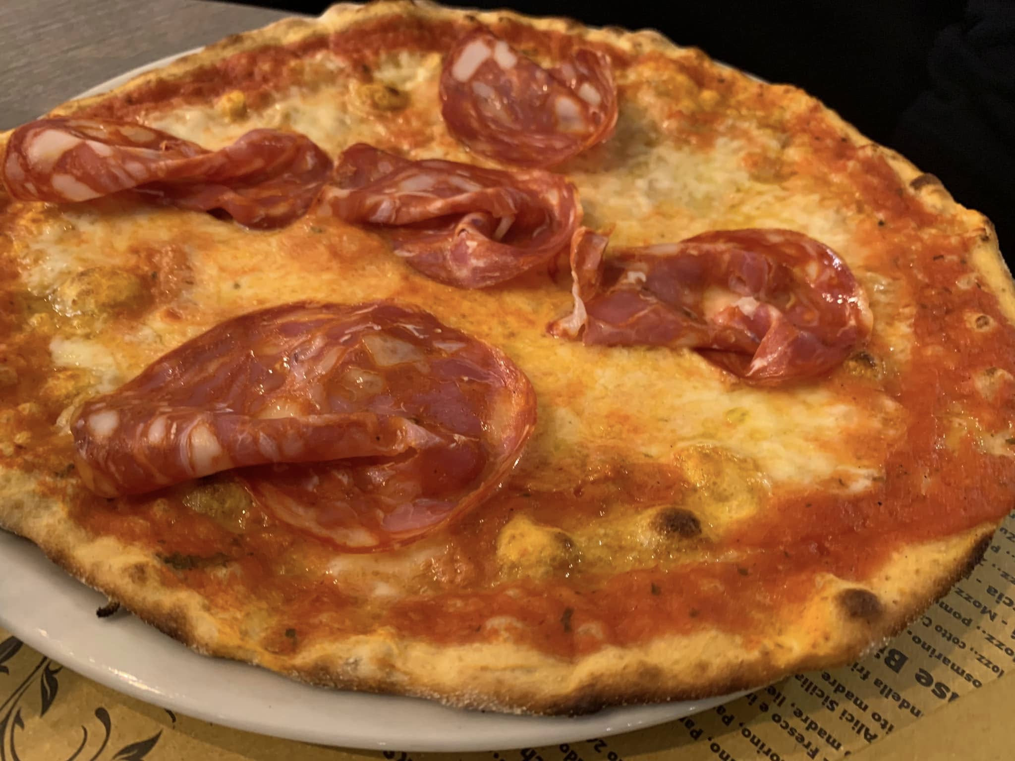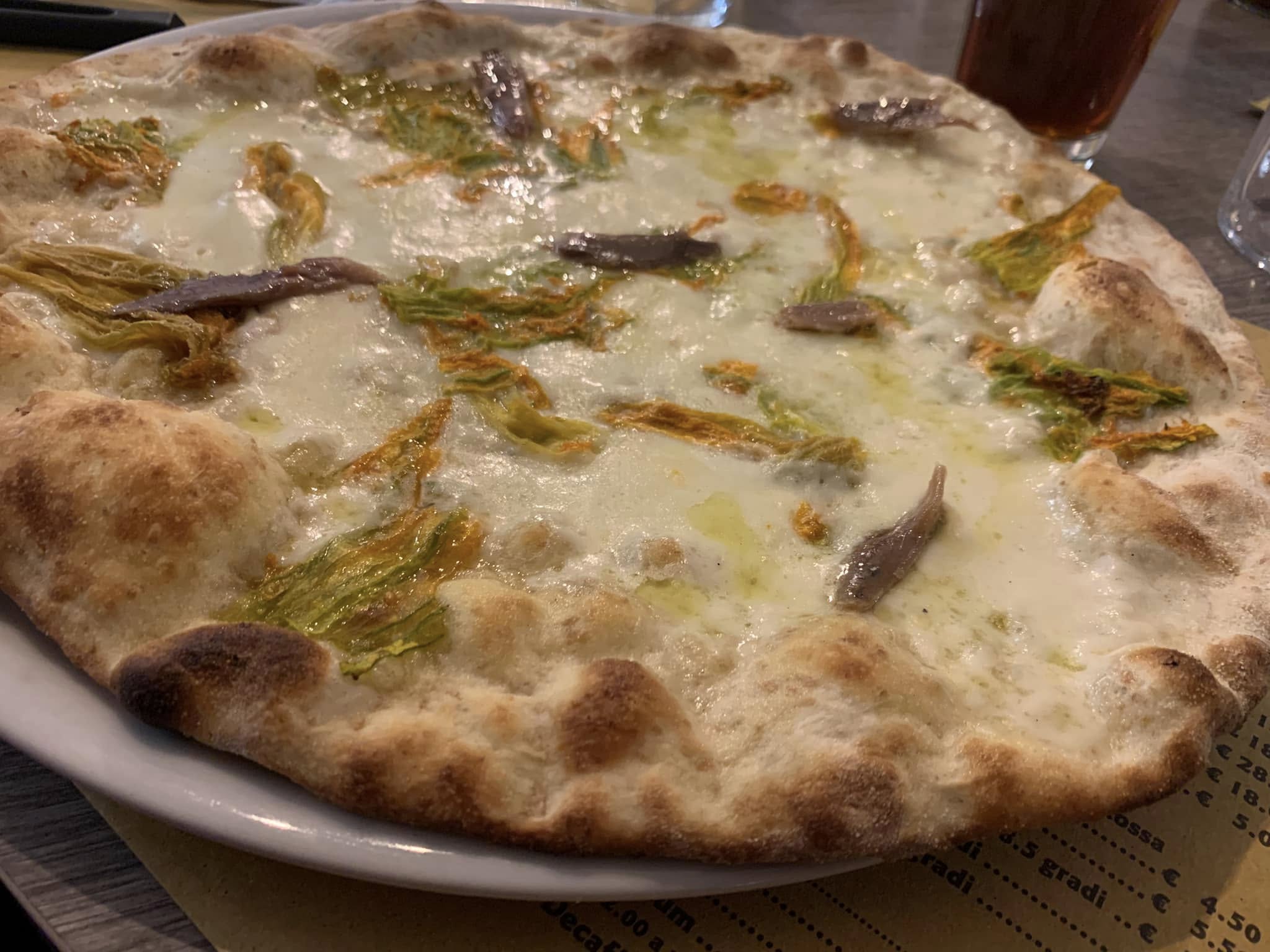 La pizza, a lunga lievitazione, è la classica tonda romana, sottile e croccante. In carta trovate la canonica divisione in ‘bianche’ e ‘rosse’: farciture classiche, niente virtuosismi o nomi fantasiosi. Marinara, capricciosa, salsiccia e friarielli, fiori e alici, diavola, e così via. Gli ingredienti utilizzati per la farcia sono di buona qualità e dunque si apprezza una pizza ben fatta, leggera, equilibrata.